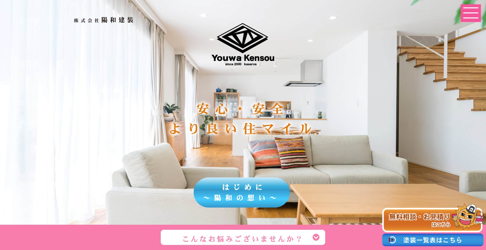 適材適所の塗料選定と施工方法で、耐久性・意匠性・防水性を兼ね備えた仕上がりを追求します。また、単なる塗装だけでなく、外壁改修工事や防水工事、シーリング打ち替え工事などの複合的なメンテナンスにも対応。価格面でも適正性を重視し、余計な中間マージンを省くなどの工夫を施すことで、価格と品質のバランスを追求しています。住まいの外観を美しく保ちつつ、将来への安心を提供するパートナーとして、株式会社陽和建装は“住マイル”を追求し続けています。