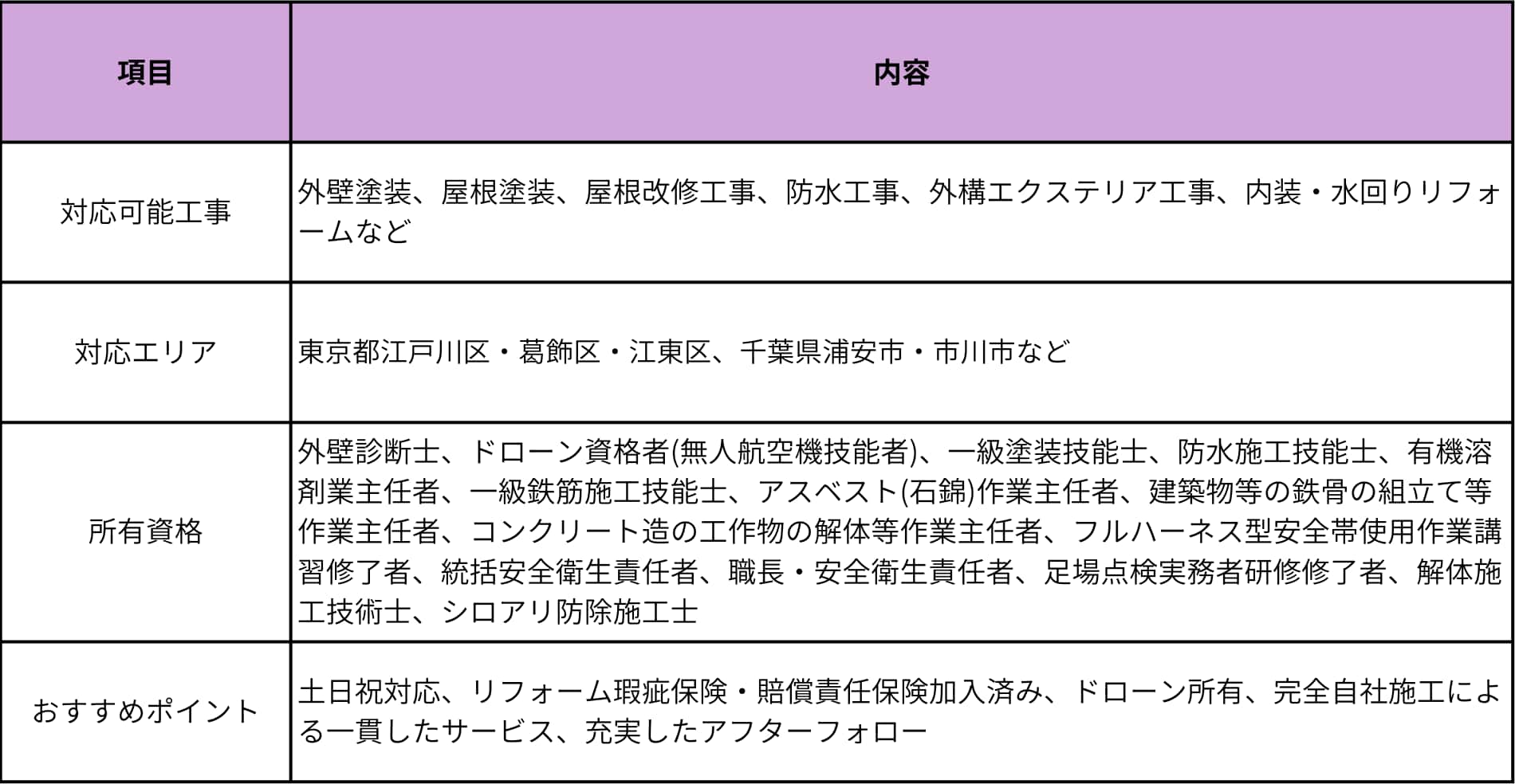施工実績・口コミが豊富で資格・保証がある