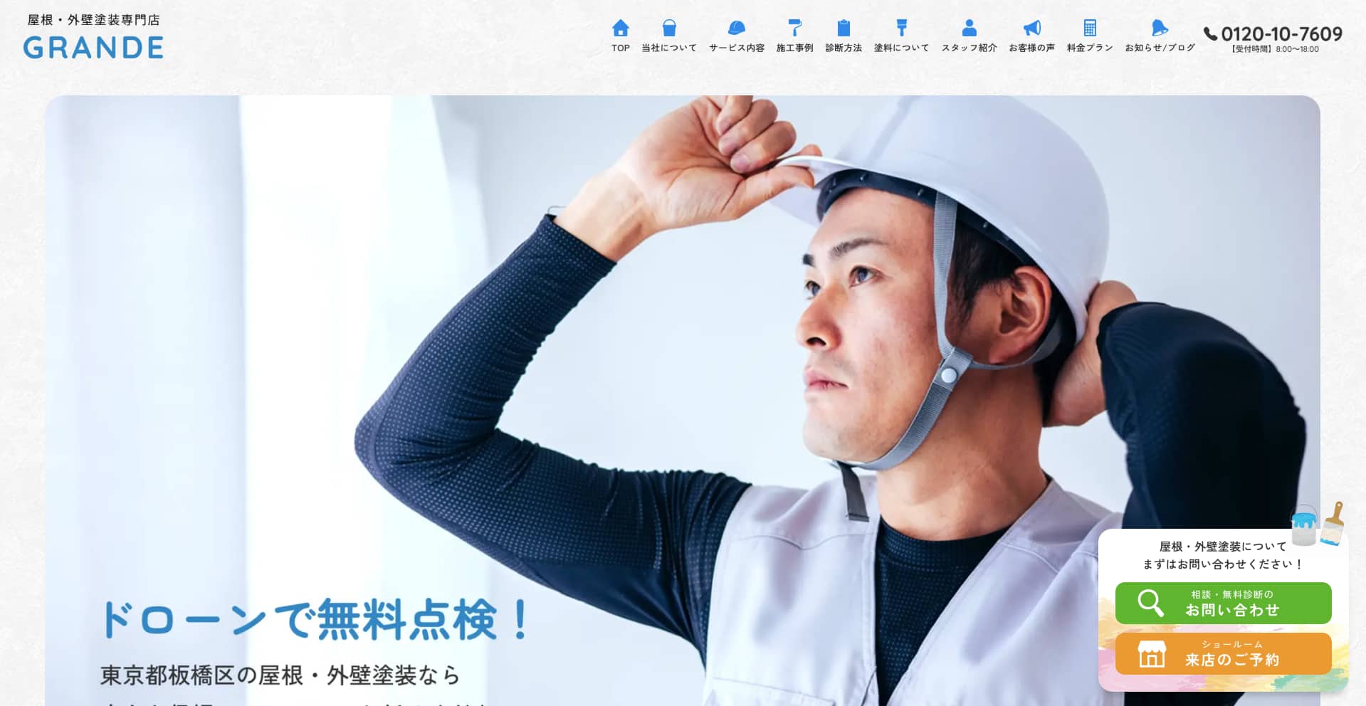 「屋根・外壁塗装専門店 GRANDE」は、東京都板橋区を拠点に、戸建て住宅からマンションの大規模修繕まで幅広い外壁・屋根塗装を手掛ける専門店です。創業より、20年以上にわたって培ってきた施工実績は2,000件を超え、「お客様の大切なお家を守る」というミッションのもと、高品質な塗装とアフターケア体制を大切にしています。