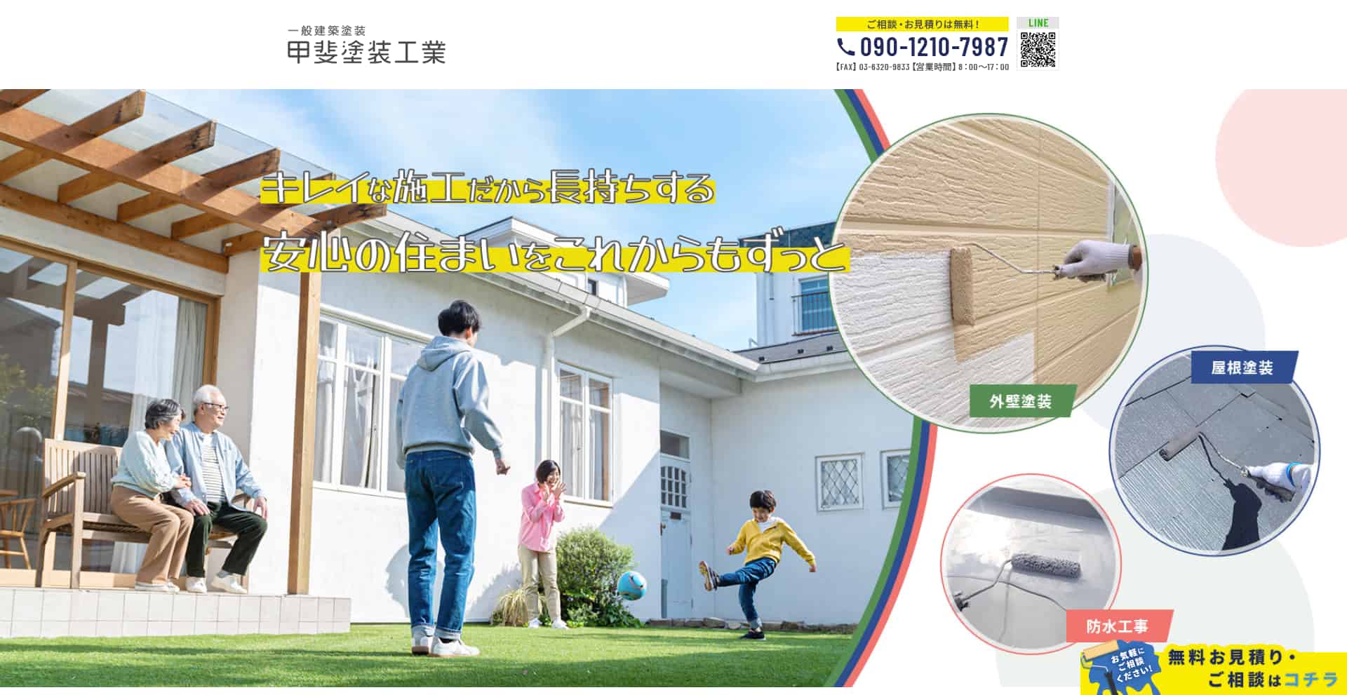 | 対応可能工事 | 外壁塗装、屋根塗装、防水工事、シーリング工事など |