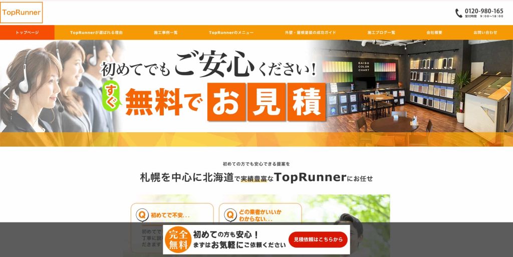 「TopRunner」は、北海道札幌市を拠点に外壁・屋根塗装を中心とした住宅リフォームを手がける専門業者です。創業以来、60,000件以上の施工実績を誇り、地域密着型のサービスで信頼を築いています。丁寧で迅速な対応と高品質な仕上がりを提供し、長期保証制度も整備しています。