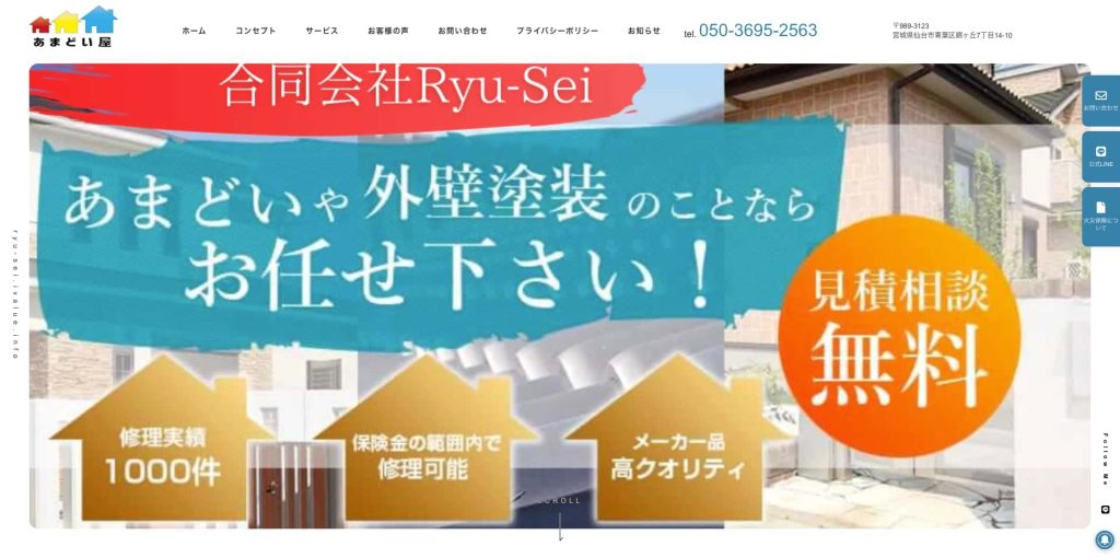宮城県仙台市を拠点とする「あまどい屋」は、外壁塗装や屋根塗装、雨樋修理などを中心に住宅の外装リフォーム全般を手がける専門会社です。