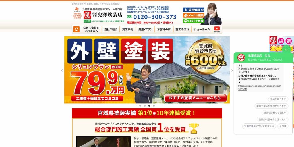 自社職人による直接施工にこだわり、中間マージンを排除し、高品質かつ適正価格のサービスを提供しています。東北特有の気候に適した耐久性・断熱性の高い外壁材による施工で、快適な住環境を提供している点が特徴です。また、外壁塗装だけでなくサイディングの張り替え提案など幅広い選択肢を提示し、住まいの価値向上をサポート。