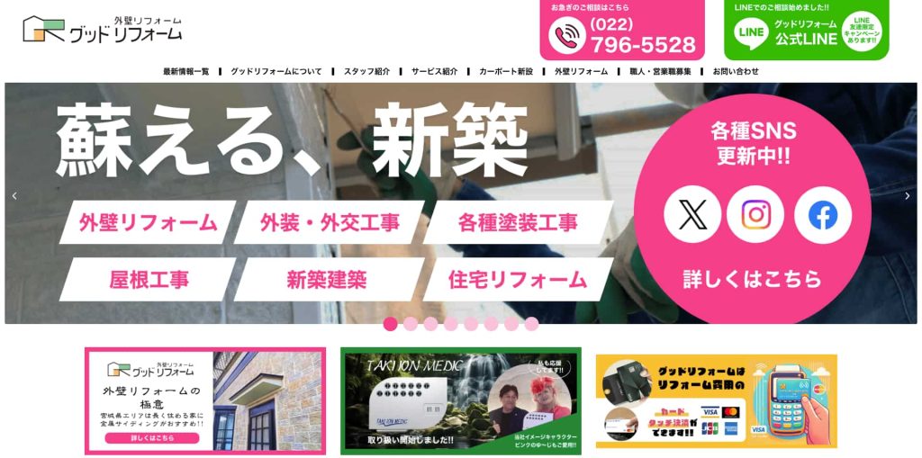 宮城県仙台市を中心に外壁リフォームを手がけるグッドリフォーム株式会社は、金属サイディングを活用した外壁工事を強みとする地域密着型の専門会社です。