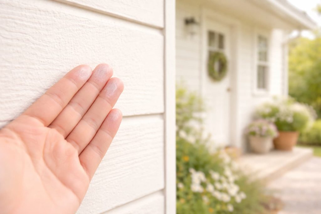 外壁の色が「ちょっとくすんできたかも…」と感じたり、手で触ったときに白っぽい粉がついたら、それは「チョーキング現象」と呼ばれる塗膜の劣化サインなので要注意。